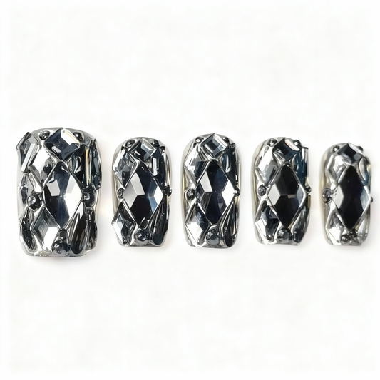 Silver Chrome Punk Press-On Nails T244