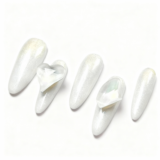 Moonlight White Ice Crystal Heart Press-On Nail T 247